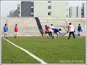 12月13日中午,学院教工足球队与刚刚获得学院首届男子足球赛冠军的工商管理系足球队在体育场进行了一场足球友谊赛。
