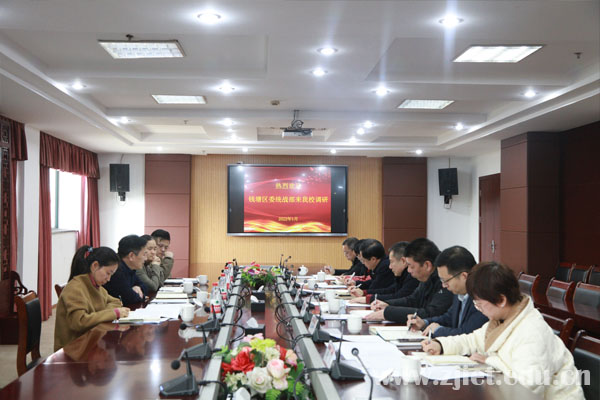 1月6日,钱塘区委常委、统战部部长周伟东一行来我校调研指导,这是2021年钱塘区建立“1+1+1”组团式联系高校机制的举措之一。学校党委书记劳赐铭、校长陈德泉、党委副书记许宝峰等热情接待了来访客人,学校办公室、宣传统战部、人文旅游学院等相关部门负责人参加座谈交流。