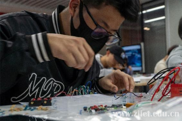 活动现场,应用工程学院和美迪凯联合举办了2022年学校第十七届学生职业技能竞赛暨首届美迪凯杯电子产品设计及制作大赛初赛。此次竞赛旨在引导学生关注电子行业新技术的发展趋势与技术应用方向,力争培养学生工程实践素质,提高学生实践动手及解决问题能力。竞赛内容包括面包板搭建调试设计、硬件焊接组装和调试、功能实现等,主要考察学生电子产品装配与调试能力。参赛选手要按照竞赛任务要求,完成功能电路的设计、制作、焊接、调试,并将制作电路装配到指定电子产品中。比赛共吸引来自10个专业共35名同学参赛,选手在1.5小时内完成专业理论知识及面包板的电路搭建任务,最终决出10名选手进入决赛。