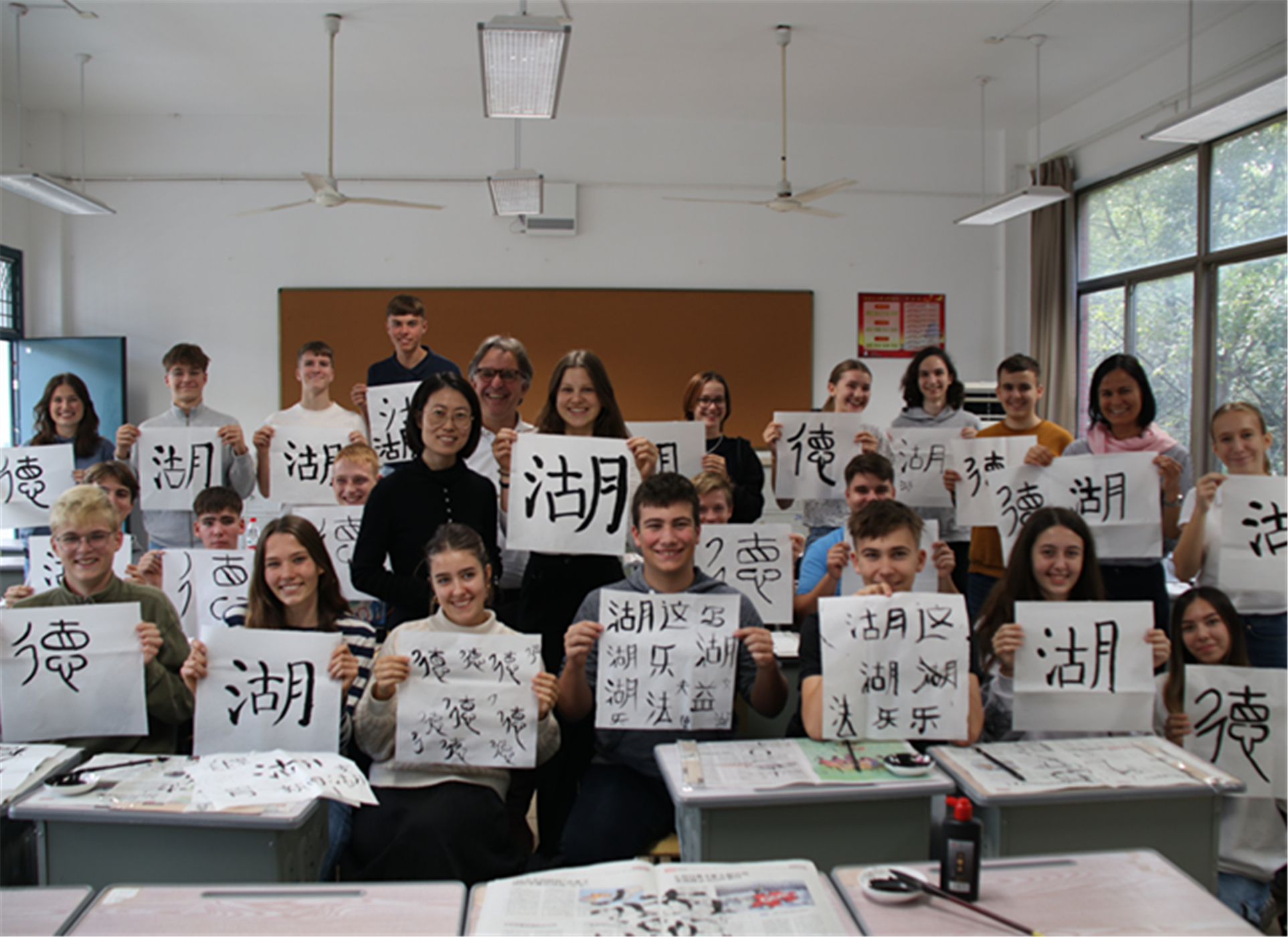 此外,全省各地中小学校也迎来了境外姐妹学校的密集来访。韩国西归浦市教育基金会学校师生一行60人访问杭州市建兰中学,体验学校拓展课程,参访杭州青少年发展中心、亚运场馆等;韩国全罗南道顺天市晓泉高中师生一行23人访问宁波市第四中学,双方举办“中韩友谊”篮球赛、开展交流座谈;德国厄林根市霍恩罗厄高级文理中学师生一行25人访问浙江省湖州中学,学校组织了书法课堂体验、升旗仪式、团扇制作、篮球足球友谊赛、民乐鉴赏等丰富多彩的活动。